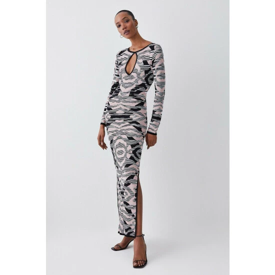 75% Viscose 25% Nylon. Wash with similar colours. Model wears Small. Model height approx 5″9. Small centre back length approx 145cm.