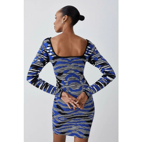 Discount ๐ KarenMillen Contrast Jacquard Stud Detail Knit Maxi ๐ Dress For Female ๐