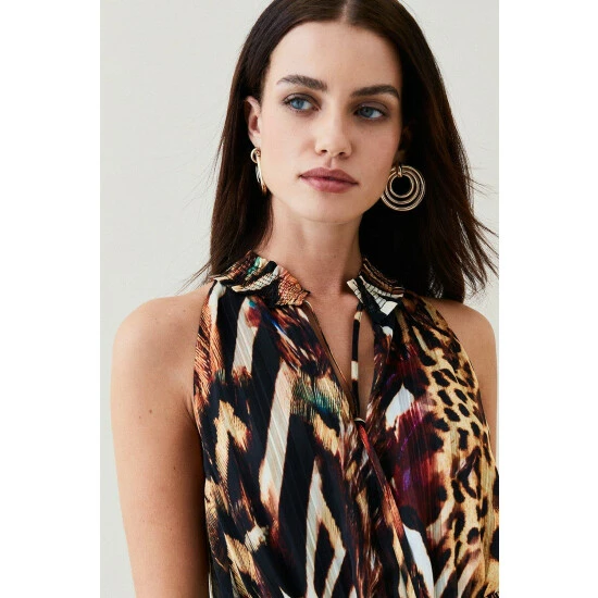 100% polyester. Gentle machine wash at 30 with similar colours. Model Height 5”10 – Model wears a UK 8/US Size 6. Centre back length of a 10: 90cm