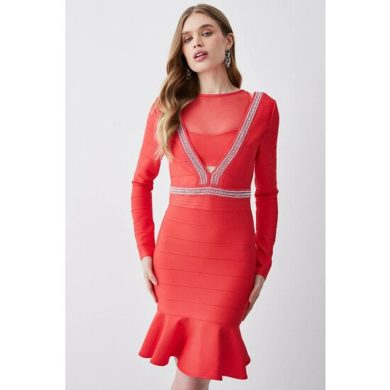 97% Recycled Polyester 3% Elastane. Dry Clean Only. Model wears UK Small. Size Small centre back length approx 90cm.