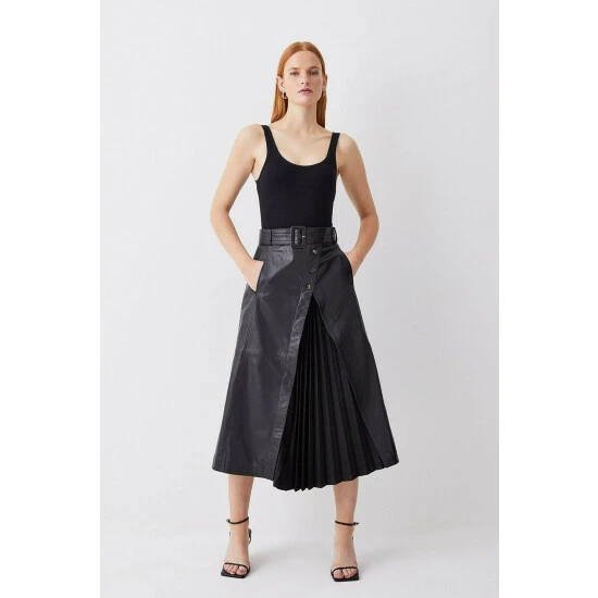 Main: 100% Responsible Leather. Lining: 100% Polyester. Specialist Clean Only. Model wears UK size 8/ US size 4. Model height Approx: 5″9. Length Approx: 84cm.