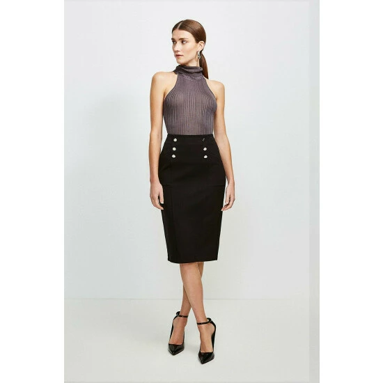 68% Viscose, 27% Nylon, 5% Elastane. Machine Wash. Model wears size 8.Centre Back Length 70cm.