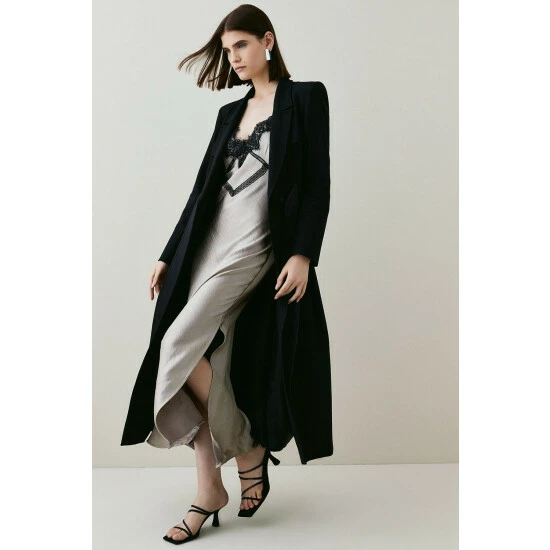Main: 30% Recycled Polyester, 33% Polyester, 31, Viscose, 6% Elastane. Lining: 100% Polyester. Professional Dry Cleaning. Model wears UK size 8/ US size 4. Model height Approx: 5″9. Length Approx: 125cm.