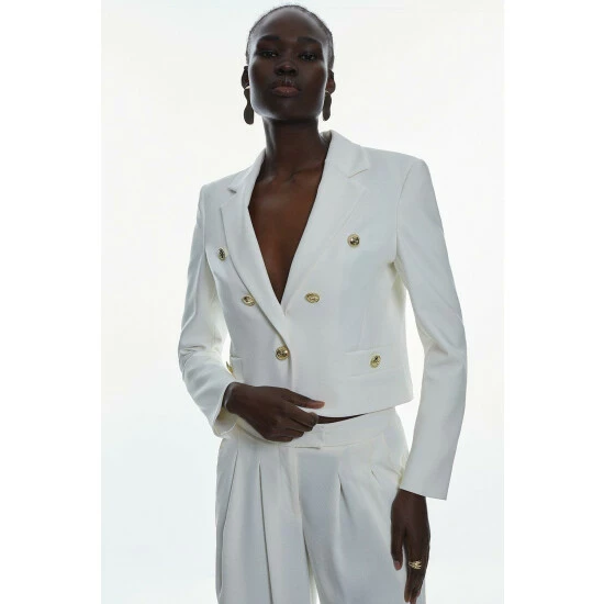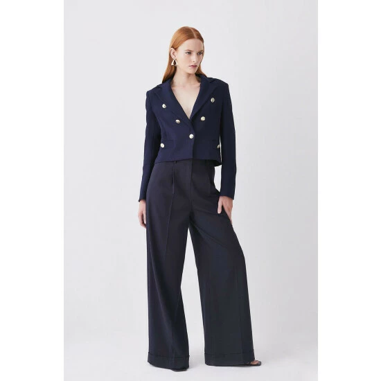 Main: 34% Viscose, 32% Polyester, 30% Recycled Polyester, 4% Elastane. Excluding trims: Lining: 100% Polyester. Dry clean only. Model wears UK 8/US 4. Model height: 5″9. Length measurement: 51cm.
