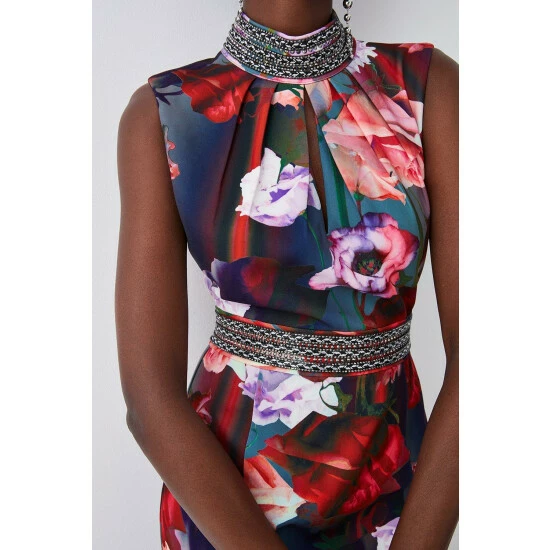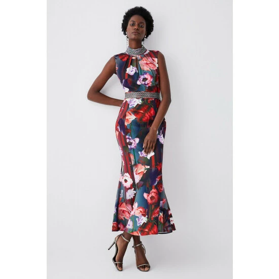 Discount ๐ KarenMillen Contrast Jacquard Stud Detail Knit Maxi ๐ Dress For Female ๐