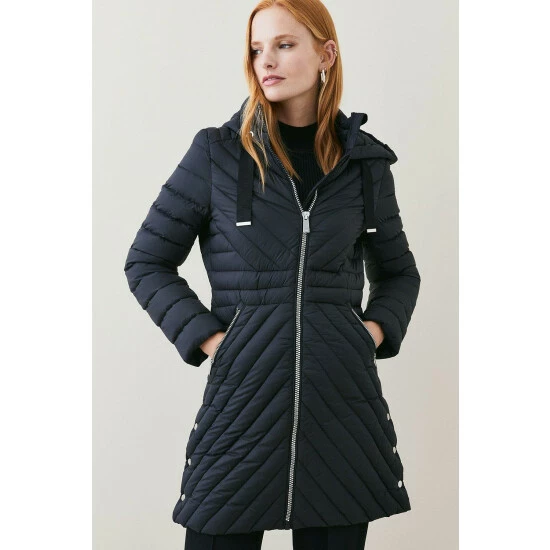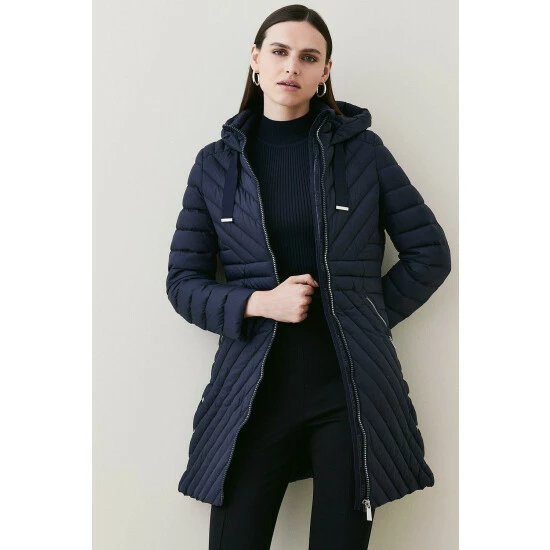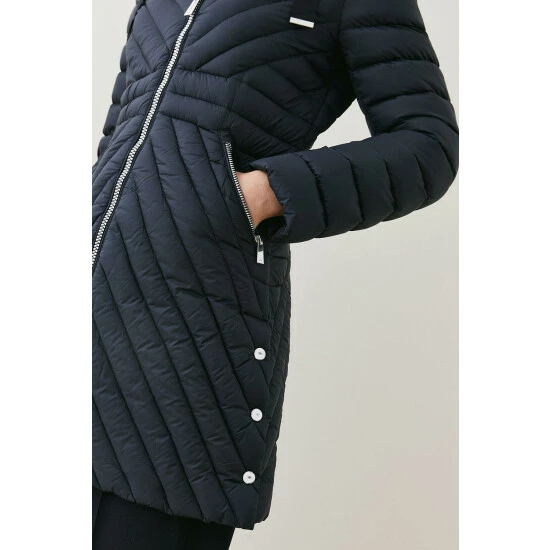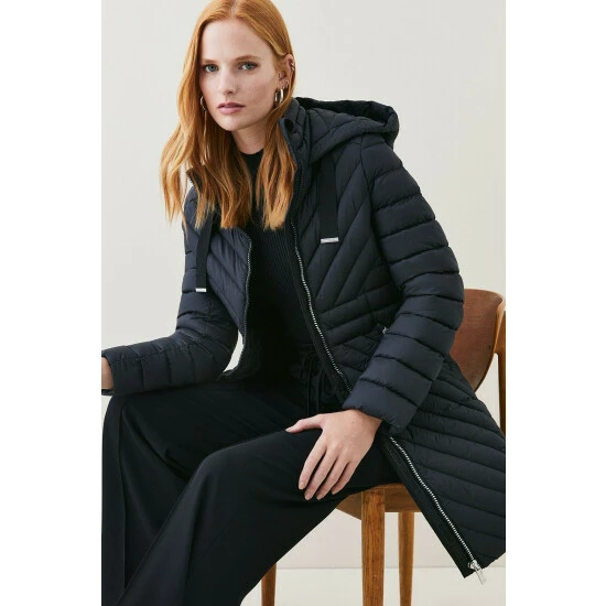 Shell:100% Nylon. Binding: 100% Polyester. Filling: 100% Down. Do not use fabric conditioner. Wash with similar colours. Model wears UK 8/US 4. Model height: 5″9. Length measurement: 88cm.
