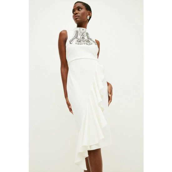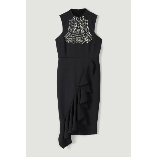 Main: 93% Polyester7% Elastane. Dry Clean Only. Model wears UK Size 8 US Size 4. Model height approx 5″9. Size 10 Centre back length approx:105cm.