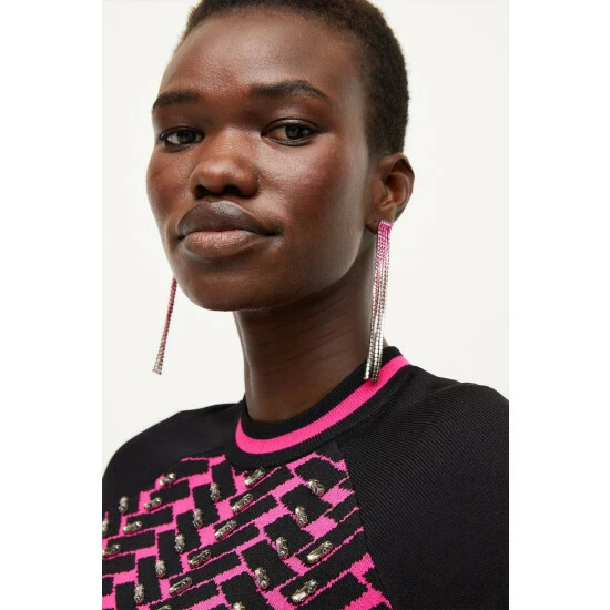 65% responsibly sourced viscose, 35% polyamide. Turn inside out before cleaning. Model wears UK Size Small. Size Small centre back length approx: 88cm.