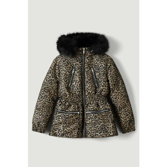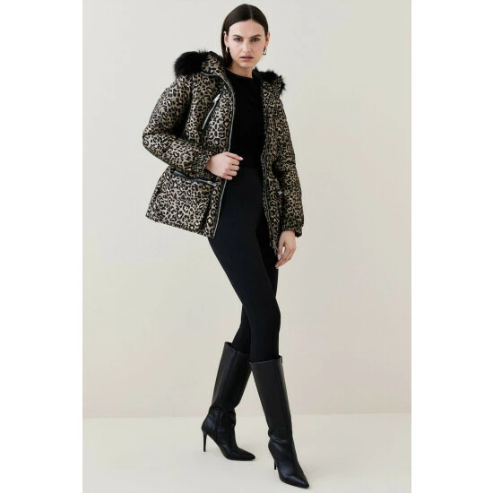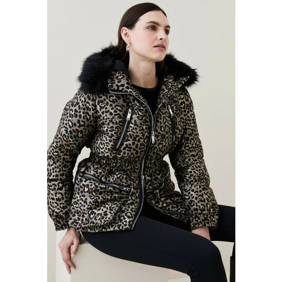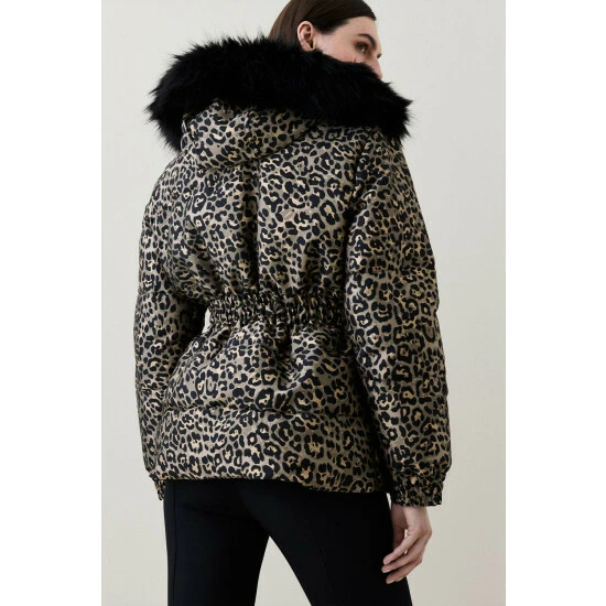 Shell: 94% Polyester, 6% Metallised Fibre/ Metallic Fibre. Lining: 100% Polyester. Faux Fur trim: 55% Acrylic, 45% Modacrylic. Wadding: 100% Polyester. Dry clean only. Model wears UK 8/US 4. Model height: 5″9. Length measurement: 69cm.
