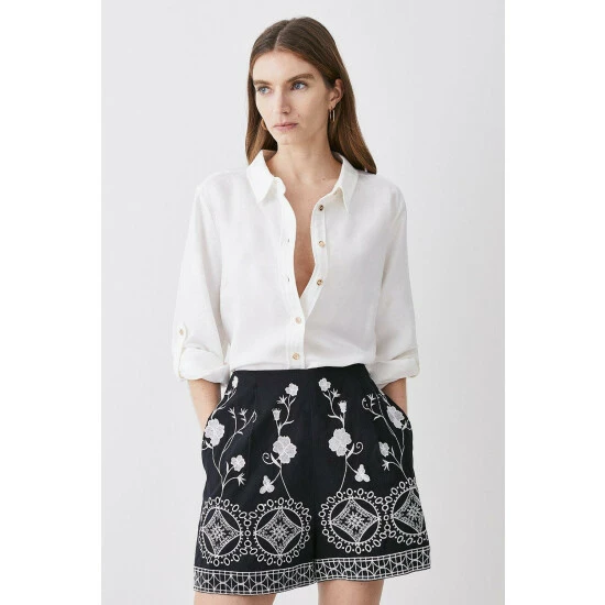 100% polyester. Gentle machine wash at 30 with similar colours. Model Height 5”10 – Model wears a UK 8/US Size 6.