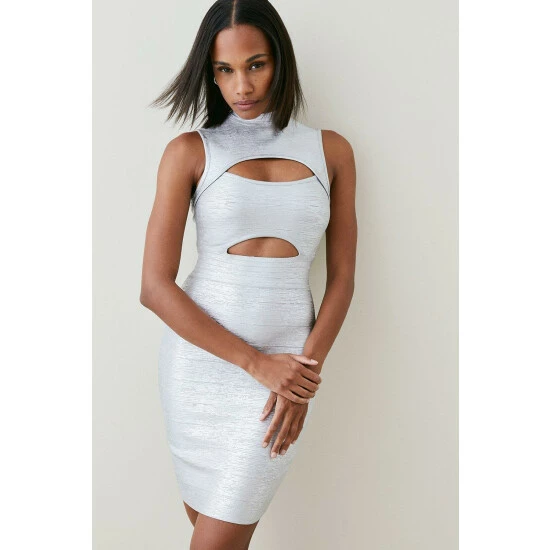 97% recycled polyester 3%elastane. Contrast: 100% polyester. Dry clean only, store flat. Model wears a size small. Approx length 90cm