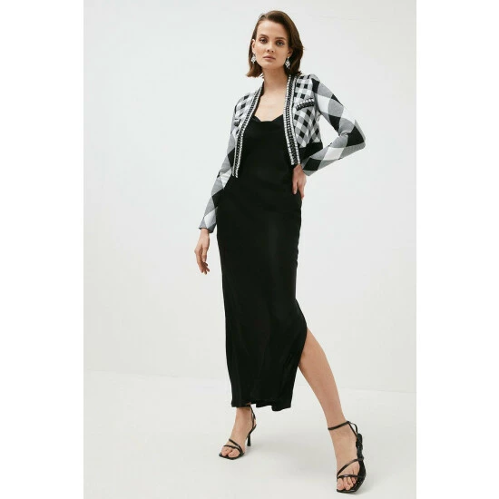 97% Polyester, 3% Elastane, Dry clean only, Dry and store flat, Model wears a UK S, Height 5’9