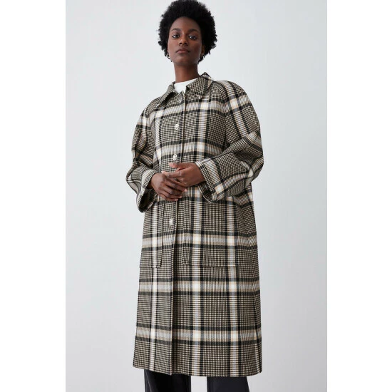 Main: 67% Cotton, 22% Wool, 10% Polyamide, 1% Other fibres. Excluding trims: Lining: 100% Viscose. Dry clean only. Model wears UK 8/US 4. Model height: 5″9. Length measurement: 117cm.