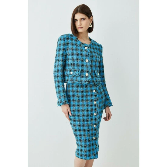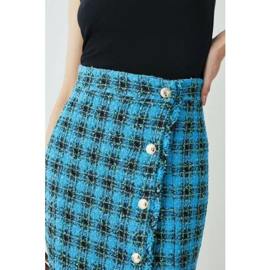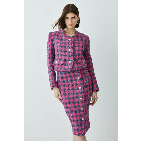 Main: 42% Cotton, 31% Polyester, 16% Acrylic, 9% Wool, 1% Metallised Fibres. Dry clean only. Model wears UK 8/US 4. Model height: 5″9. Length measurement: 69cm.