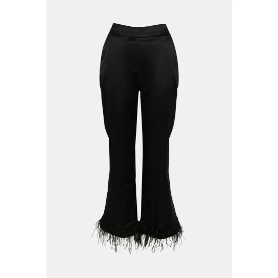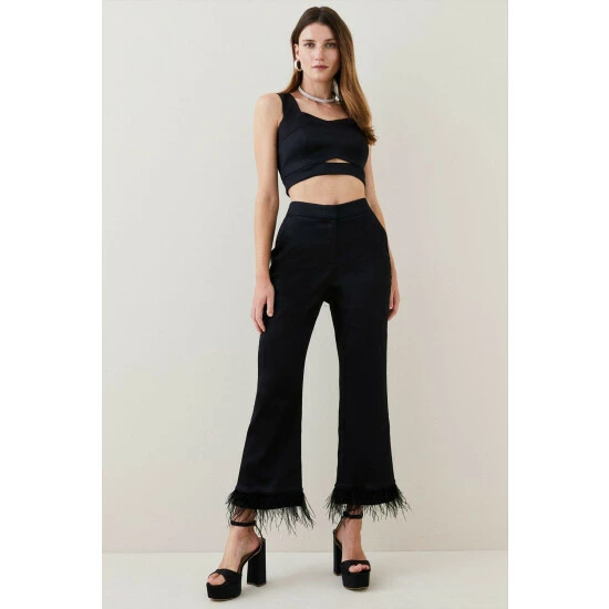 Main: 75% Acetate, 22% Polyamide, 3% Elastane/Spandex. Trim: Feathers. Lining: 100% Polyester. Dry Clean Only. Model wears UK 8/US 4. Model height: 5″9. Length measurement: 68cm.