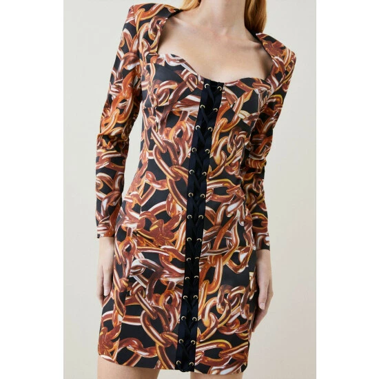 Main: 71% Acetate, 26% Polyamide, 3% Elastane/Spandex. Lining: 100% Polyester. Dry clean only. Model wears UK 8/US 4. Model height: 5″9. Length measurement: 84cm.