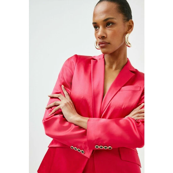 Main: 75% Acetate, 22% Polyamide, 3% Elastane. Lining: 100% Polyester. Dry Clean Only. Model wears a UK Size 8. Garment Length in a UK Size 10: 67cm. Model’s height: 5″9