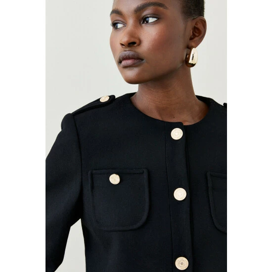 Main: 30% Recycled Wool, 40% Wool, 30% Polyamide. Lining: 100% Polyester. Professional Dry Clean Only. Model wears UK 8/US 4. Model height: 5″9. Length Approx: 88cm.