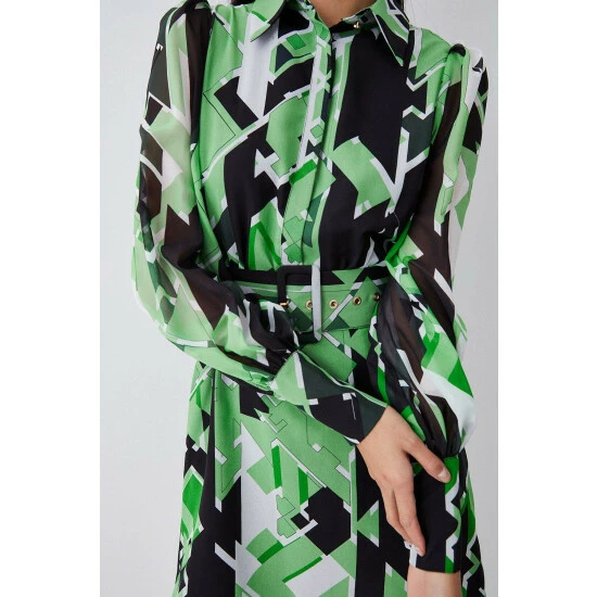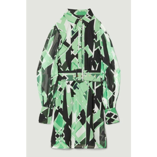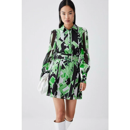 Best Pirce ๐คฉ KarenMillen Jigsaw Geo Georgette Belted Woven ๐ Shirt ๐ Dress For Female ๐