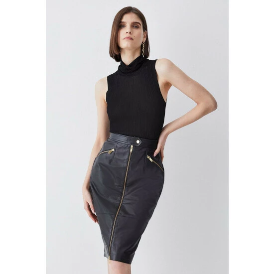 Main: 100% Responsibly Sourced Leather. Do not clean. Model wears UK 8/US 4. Model height: 5″9. Length measurement: 66cm.