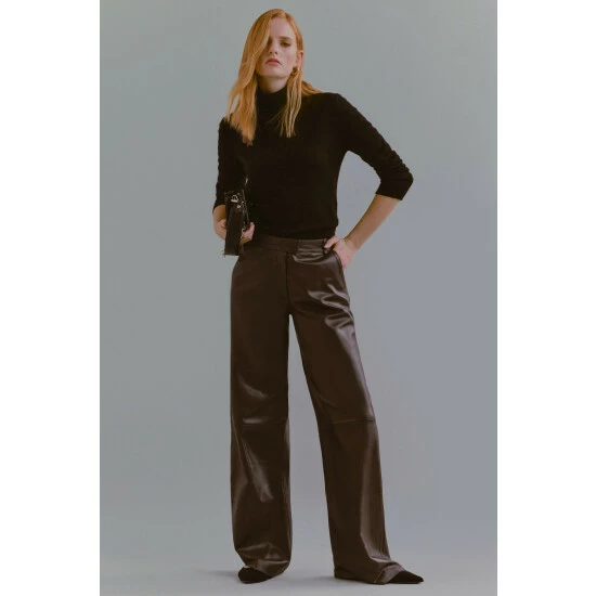 100% Responsibly Sourced Lamb Leather. Specialist leather clean only. Model wears UK 8/US 4. Model height: 5″9. Inner leg Length measurement: 87cm.