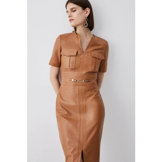 Main: 100% Responsibly Sourced Leather. Lining: 100% Polyester. Wipe clean. Model wears UK 8/US 4. Model height: 5″9. Length measurement: 113cm.