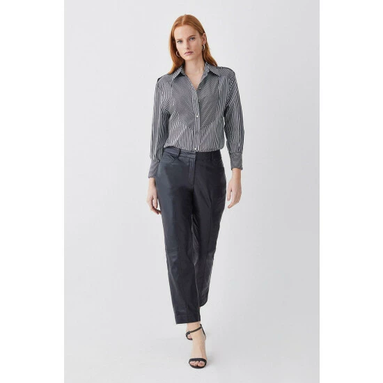 Main:p 100% Responsible Leather. Lining: 100% Polyester. Wipe Clean Only Model wears UK size 8/ US size 4. Model height Approx: 5″9. Length Approx: 72cm.
