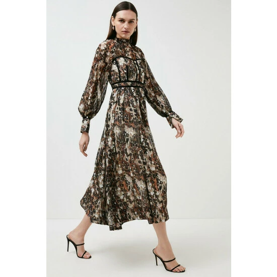 100% polyester. Machine wash at 30 with similar colours. Model wears a UK 8 / US size 6. Centre back length of a size 10: 120cm