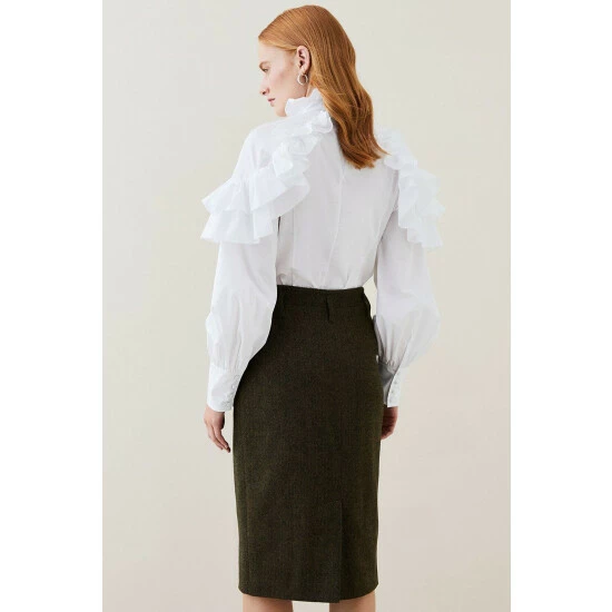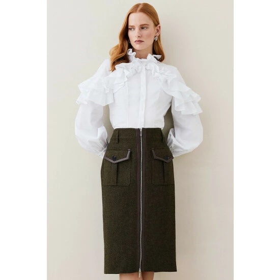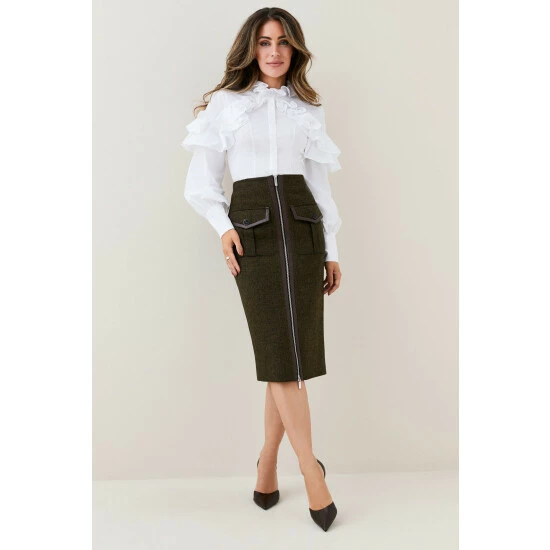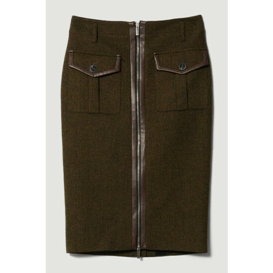 Main: 69% Virgin Wool, 30% Polyester, 1% Elastane. Excluding trims: Lining: 100% Polyester. Dry clean only. Do not wash. Do not tumble dry. Dry iron cool. Model wears UK 8/US 4. Model height: 5″9. Length measurement: 69cm.