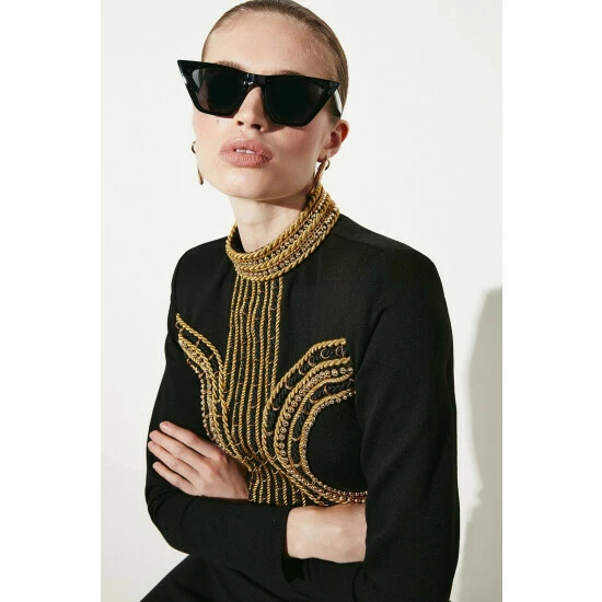 65% Viscose 31% Polyamide 4% Elastane. Hand Wash Only. Model wears UK 8 US 4. Size 10 centre back length approx 90cm.