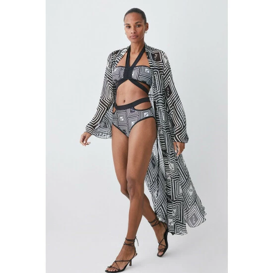 Discount ๐ KarenMillen Contrast Jacquard Stud Detail Knit Maxi ๐ Dress For Female ๐