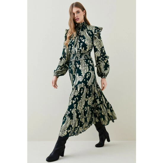 Discount ๐ KarenMillen Contrast Jacquard Stud Detail Knit Maxi ๐ Dress For Female ๐