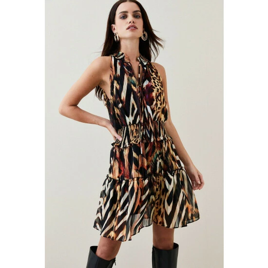 Main 100% Polyester. Machine wash with similar colours. Model wears UK 8/US 4. Centre Back Length: 84cm.