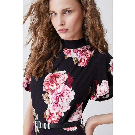 Main: 97% Viscose 3% Elastane. Wash with similar colours. Model wears UK petite 8 US 4.