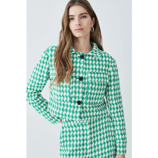 Main: 76% Cotton, 15% Polyester, 8% Viscose, 1% Elastane. Lining: 100% Polyester. Dry Clean Only. Model wears UK 8 US 4