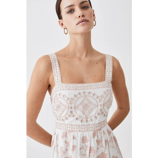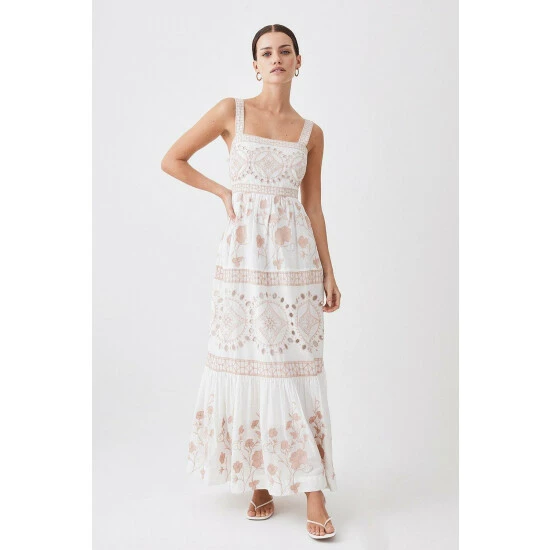 100% Cotton, Lining 100% Cotton. Gentle machine wash at 30 with similar colours. Model Height 5”10 – Model wears a UK 8/US Size 6. Centre back length 130cm.