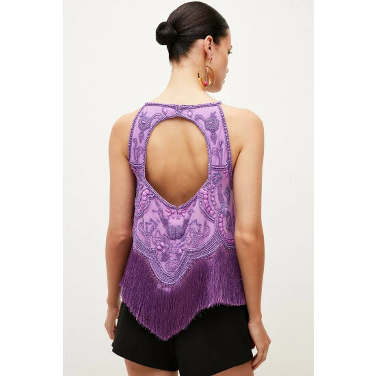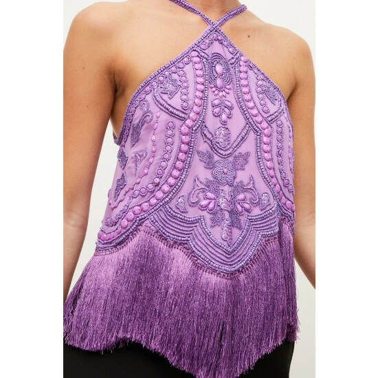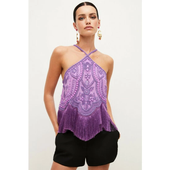 100% polyester. Gentle machine wash at 30 with similar colours. Model wears a UK 8/US Size 6.