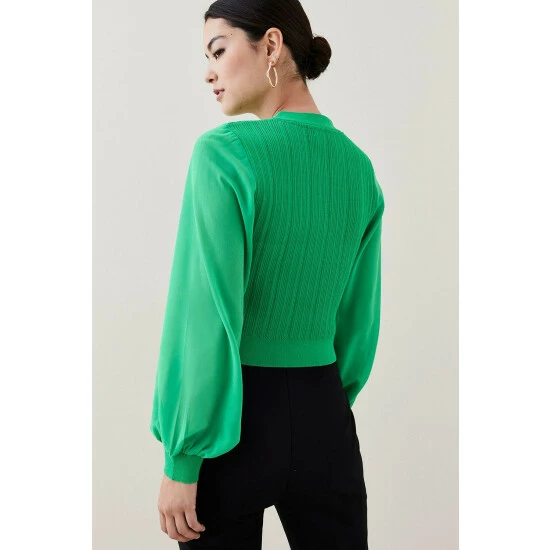 46% Viscose 28% Recycled Nylon 26% Recycled Polyester. Dry flat. Model wears UK Size XS.