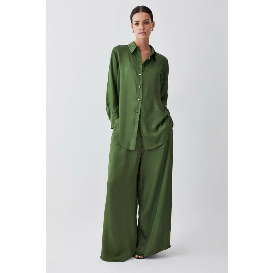 100% Viscose. Gentle machine wash at 30 with similar colours. Model wears a UK 8/US Size 6.