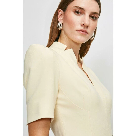 Main: 63% Polyester, 32% Viscose/Rayon, 5% Elastane/Spandex. Lining %100 Polyester. Dry clean only. Model wears UK 8/ US 4.