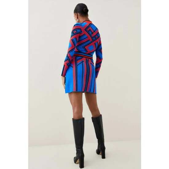 Discount ๐ KarenMillen Contrast Jacquard Stud Detail Knit Maxi ๐ Dress For Female ๐