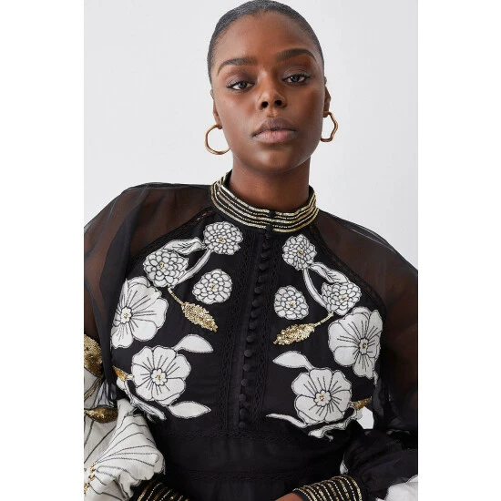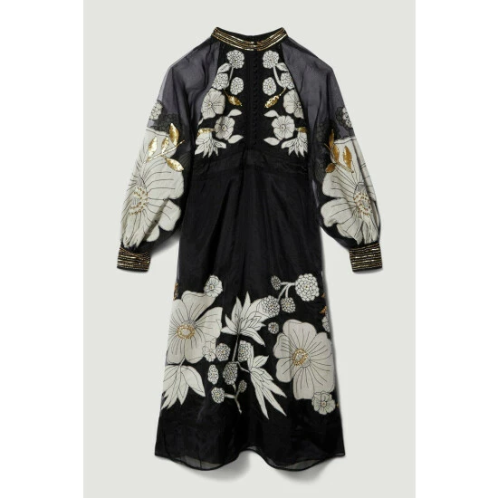 Best Pirce ๐งจ KarenMillen Plus Organdie Applique Buttoned Woven Midi ๐ Dress For Female ๐ฅฐ