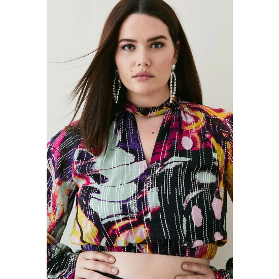 100% polyester. Gentle machine wash at 30 with similar colours. Model Height 5”10 – Model wears a UK 18/US Size 16.