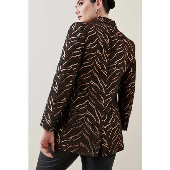 Main: 48% Viscose, 45% Polyester, 7% Metallised Fabric. Lining: 100% Polyester. Dry Clean Only. Model wears UK 18 US 14. Length Approx: 80cm.