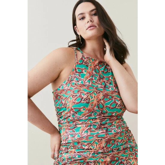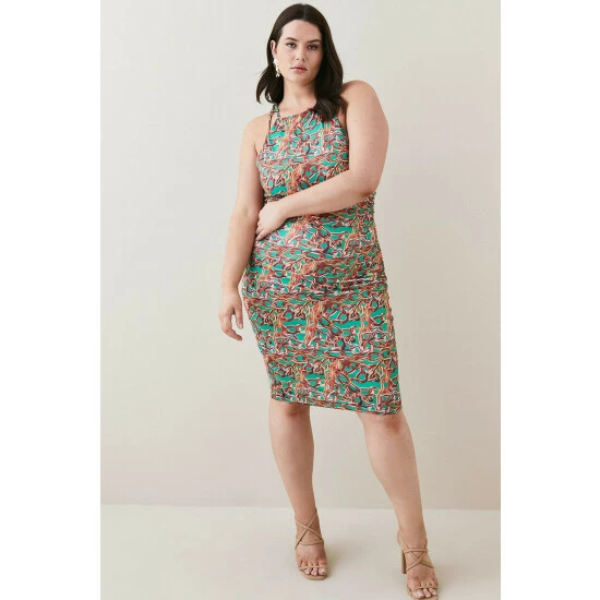 95% Polyester 5% Elastane. Wash with similar colours. Model wears UK Plus Size 18 US 14. Size 18 centre back length approx 95cm.