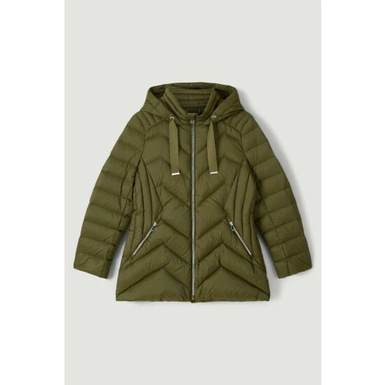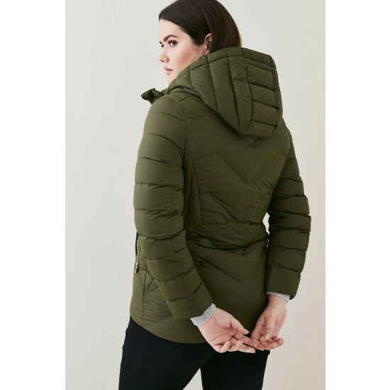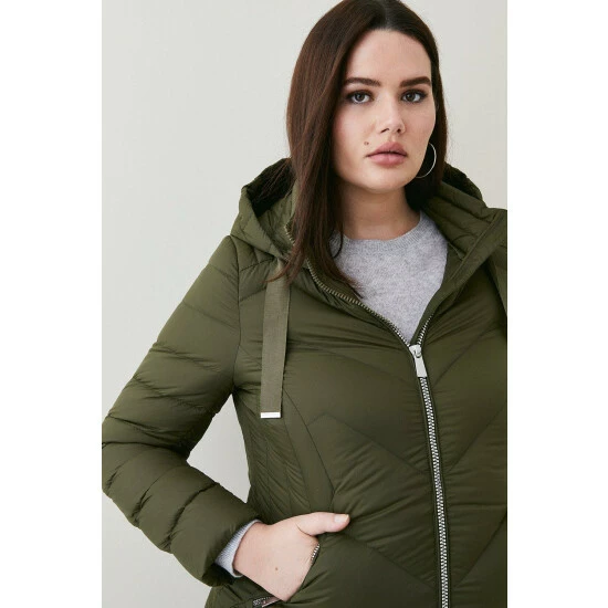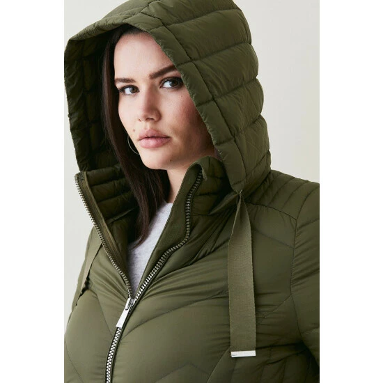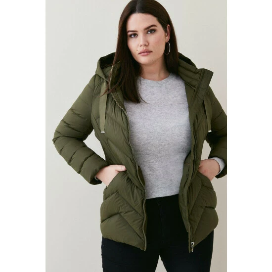 Shell:100% Nylon. Binding: 100% Polyester. Filling: 100% Down. Don not use fabric conditioner. Contains non-textile parts of animal origin. Model wears UK 18/ US 16. Length measurement: 75cm.