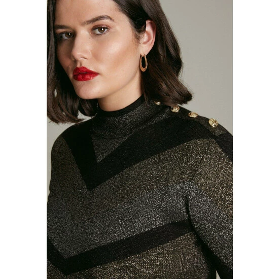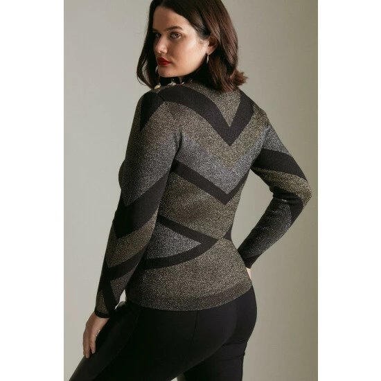 51% Viscose, 28% Polyester, 7% Polyamide, 4% Metallised fibre. Wash at 30 with similar colours. Model wears a size XL
