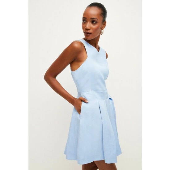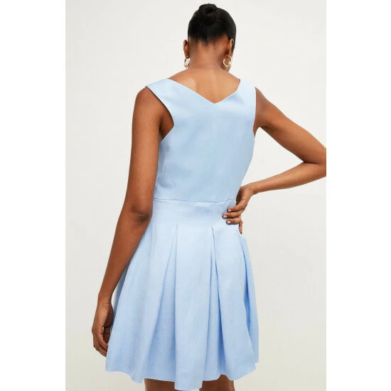Main: 72% Viscose/Rayon, 28% Linen. Lining: 100% Polyester. Dry clean only. Model wears UK 8/US 4. Model height: 5″9. Length measurement: 83cm.