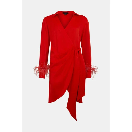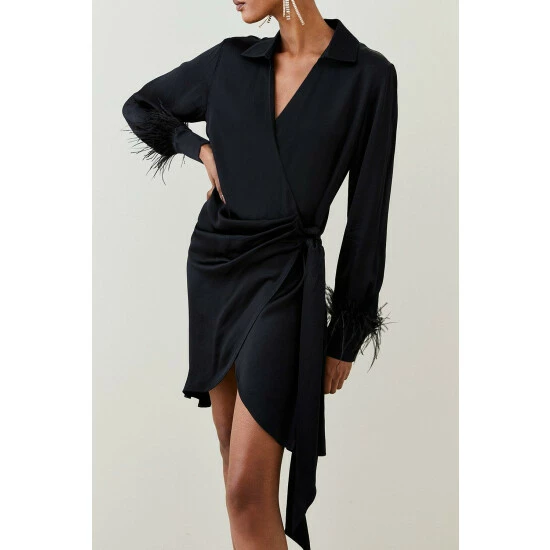Main: 100% Viscose. Trim: 100% Feathers. Lining: 100% Polyester. Dry clean only. Model wears UK 8 US 4. Model height approx 5″9. CB length of a UK 10: approx 97cm.