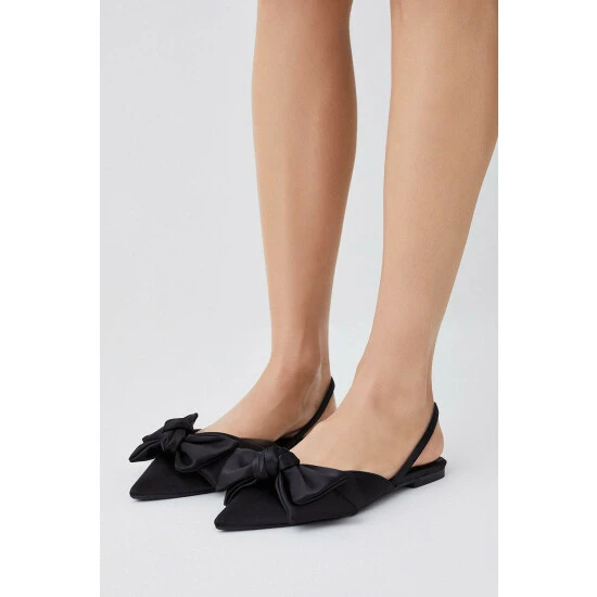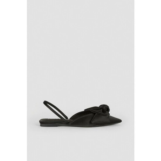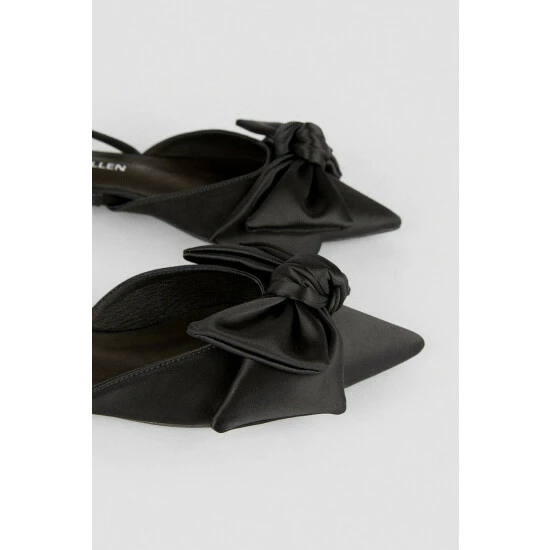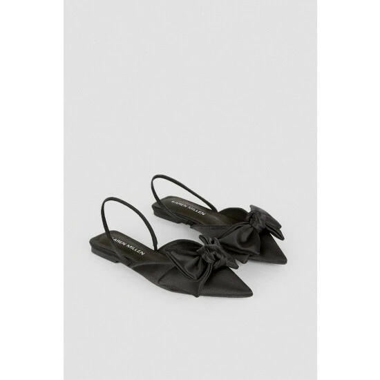 Budget 🎁 KarenMillen Satin Bow Slingback Pointed Toe Flat For Female 🥰